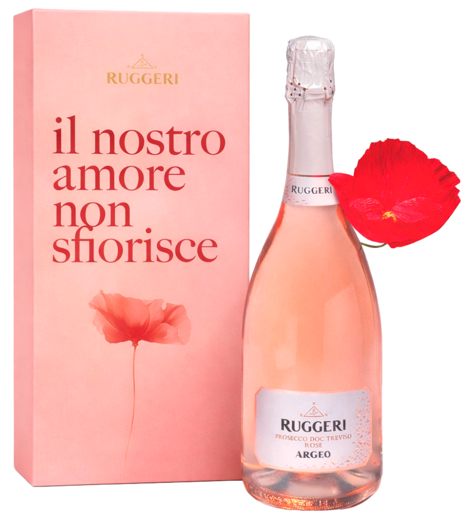 Per la festa più romantica, cantina Ruggeri e l’atelier di flower design Chicapui uniscono l’effervescenza del brindisi e la delicatezza tenace di un papavero, realizzato a mano.